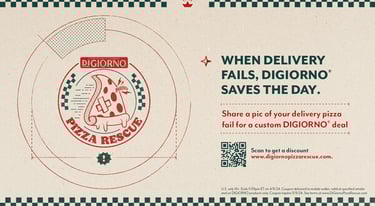 Simply visit DIGIORNOPizzaRescue.com to upload an image of your damaged pizza, where AI-enabled pizza technology will assess the pie for its level of mishap, which will then unlock a digital coupon based on the percentage of pizza that's been damaged (0-30 percent damage - $1 off, 31-60 percent damage - $1.50 off and 60-100 percent damage - $2 off) . You can then redeem the coupon at the retailer of choice and pick-up a DIGIORNO pizza!