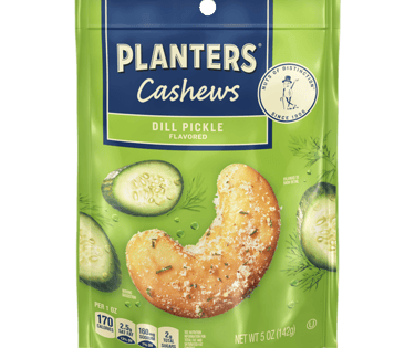 NEW PLANTERS Dill Pickle Cashews: Pickle lovers, rejoice! These mouthwatering morsels spotlight the savory essence of dill pickles, another perfect flavor pairing for an already-beloved snack.